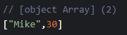 // { } <== 빈 객체 + { name : 'Mike', age : 30 }
